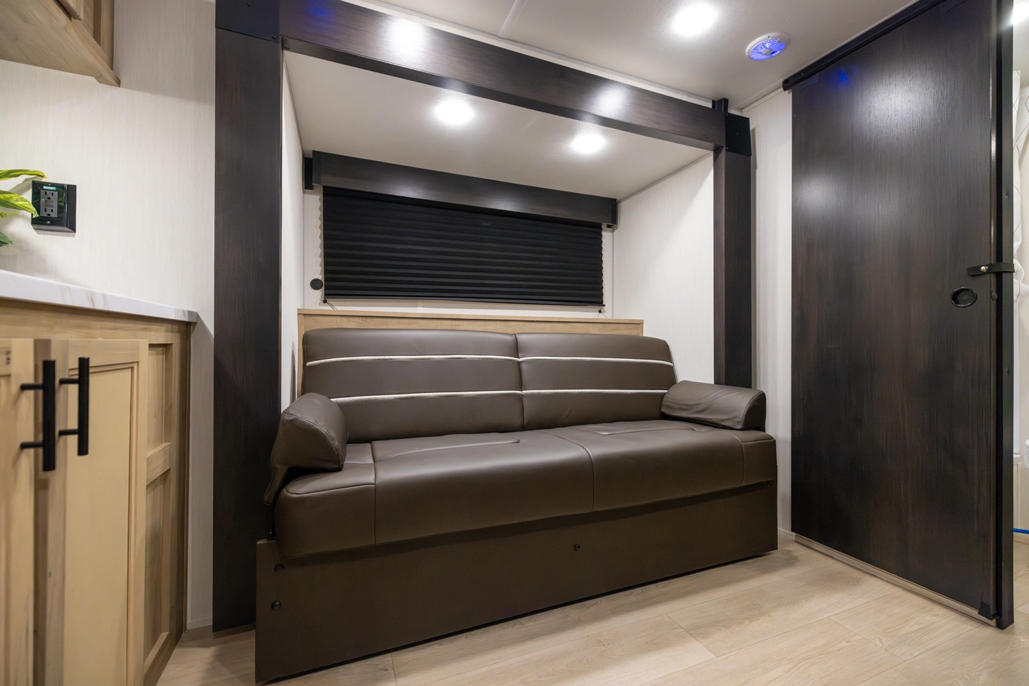 • Blackout Glass, Safety Slam, Friction Hinge Entry Door with Window and Shade Prep (N/A on LP models)