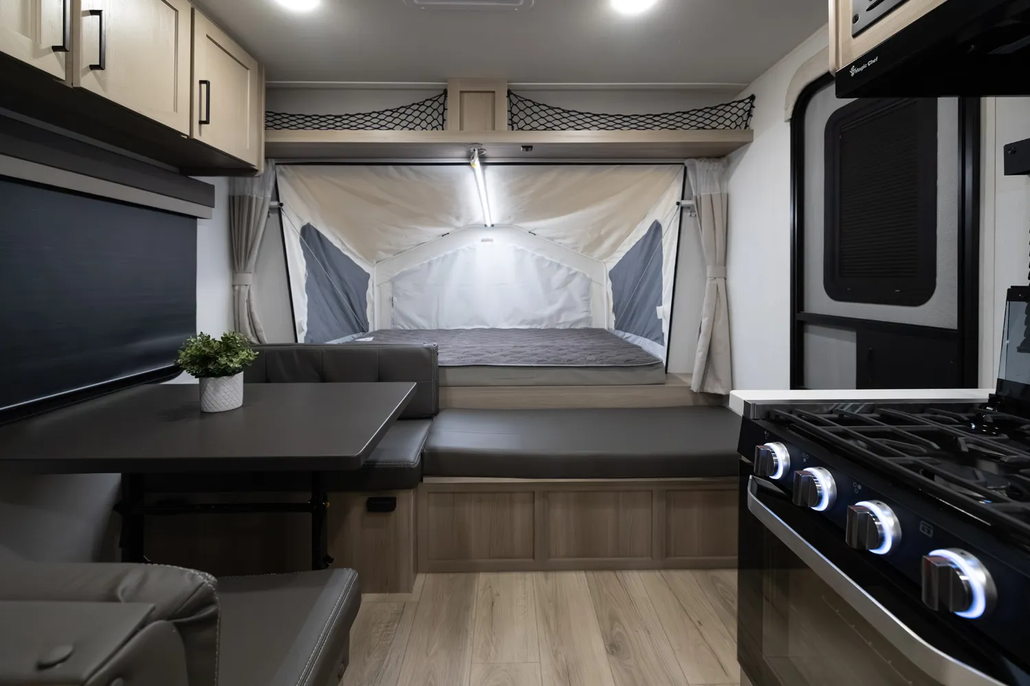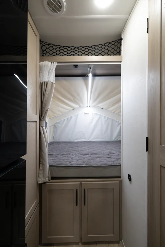 The 17E is Flagstaff’s first and only single-axle hybrid, making it both lighter and easier to tow than traditional hybrids without sacrificing features. Its smart design delivers comfortable sleeping, dining, and living spaces in a compact footprint. This floorplan is perfect for adventurers who want big camping experiences with minimal towing hassle.