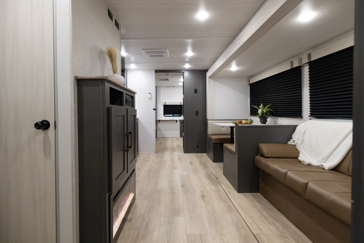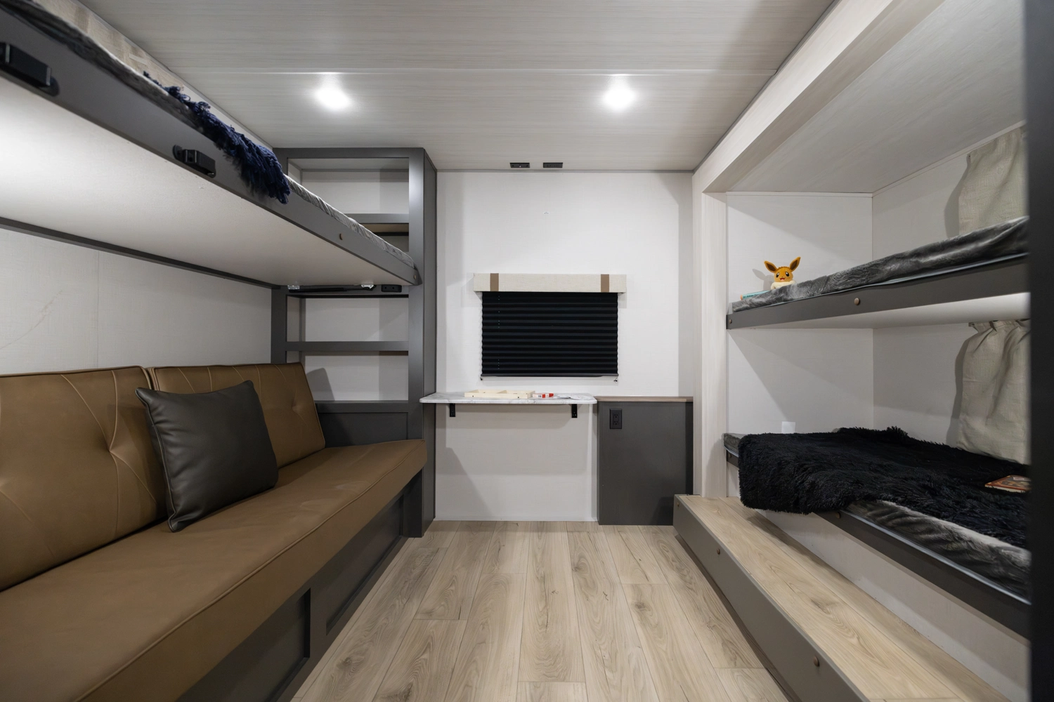 The 2026 Ibex New Trail Edition TRAIL31 offers a front queen bed, a central living area with dinette & sofa, and a private rear bunk room — perfect for kids or guests. It features a walk-through bathroom and a full kitchen with microwave/air-fryer and 10 cu ft fridge. Includes 50-amp service, washer/dryer prep, and a tankless water heater, designed with superior construction.