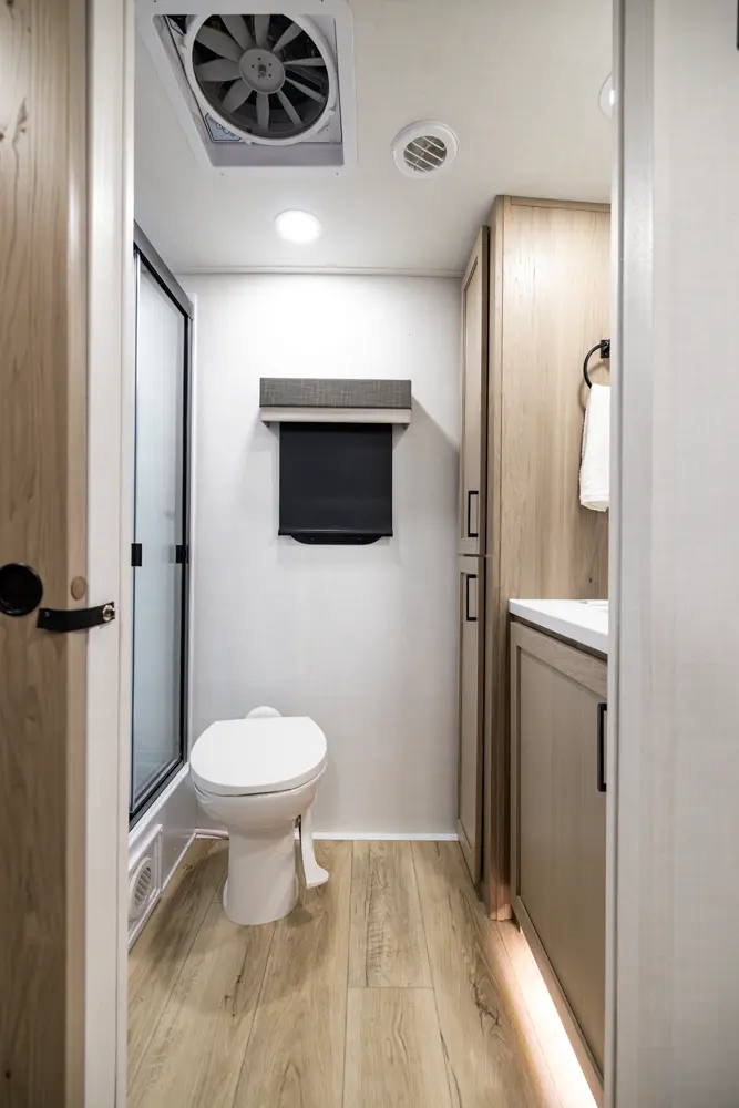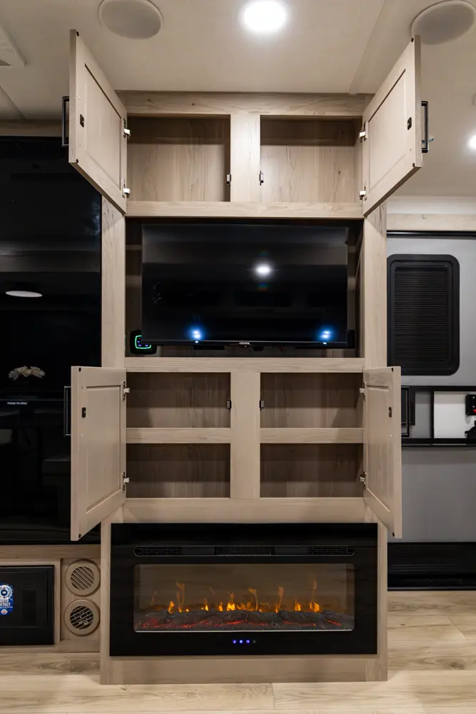 • Platinum Package: Auto Leveling, Frameless Windows, 1800W Inverter, MORryde Strut Assist Entry Step, Dual 30 LP Tanks